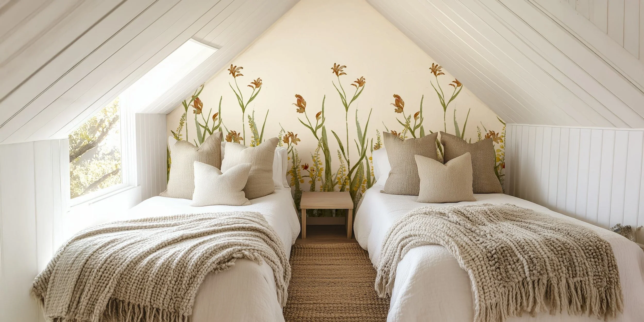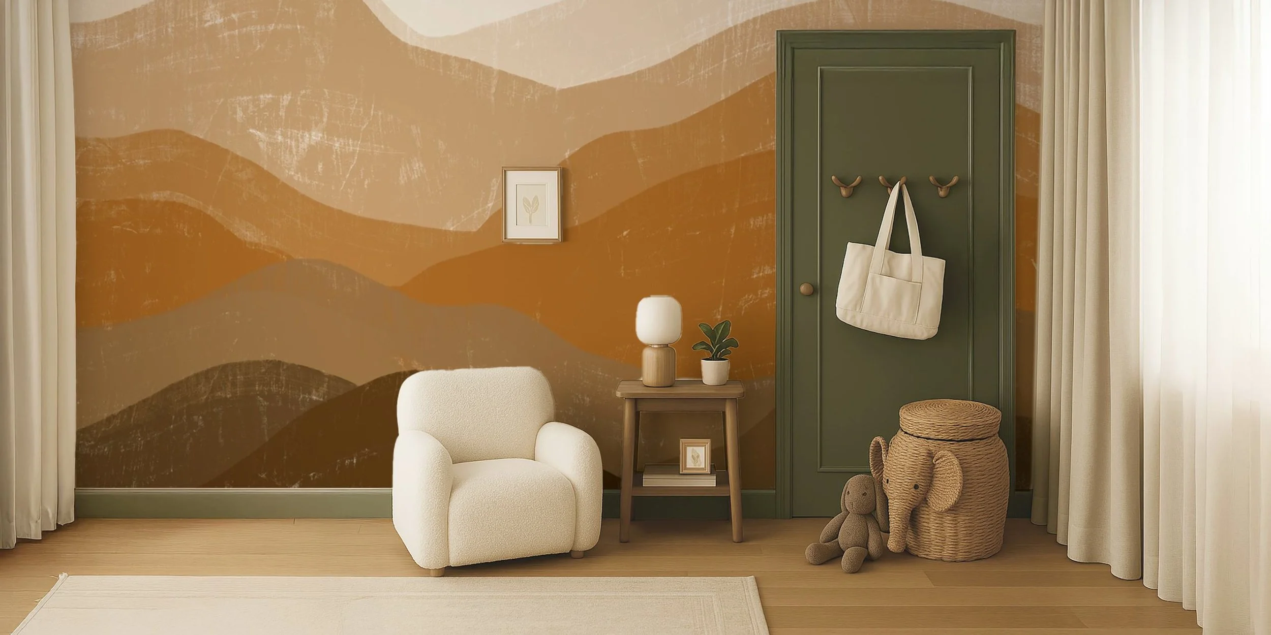 In collaboration with Happy Wall I’ve curated a collection of wallpaper murals to dress your home in bohemian prints, and artistic inspired patterns in soft earthy tones. You’ll find print suitable for stylish livingrooms, soft bedrooms and playful kidsrooms