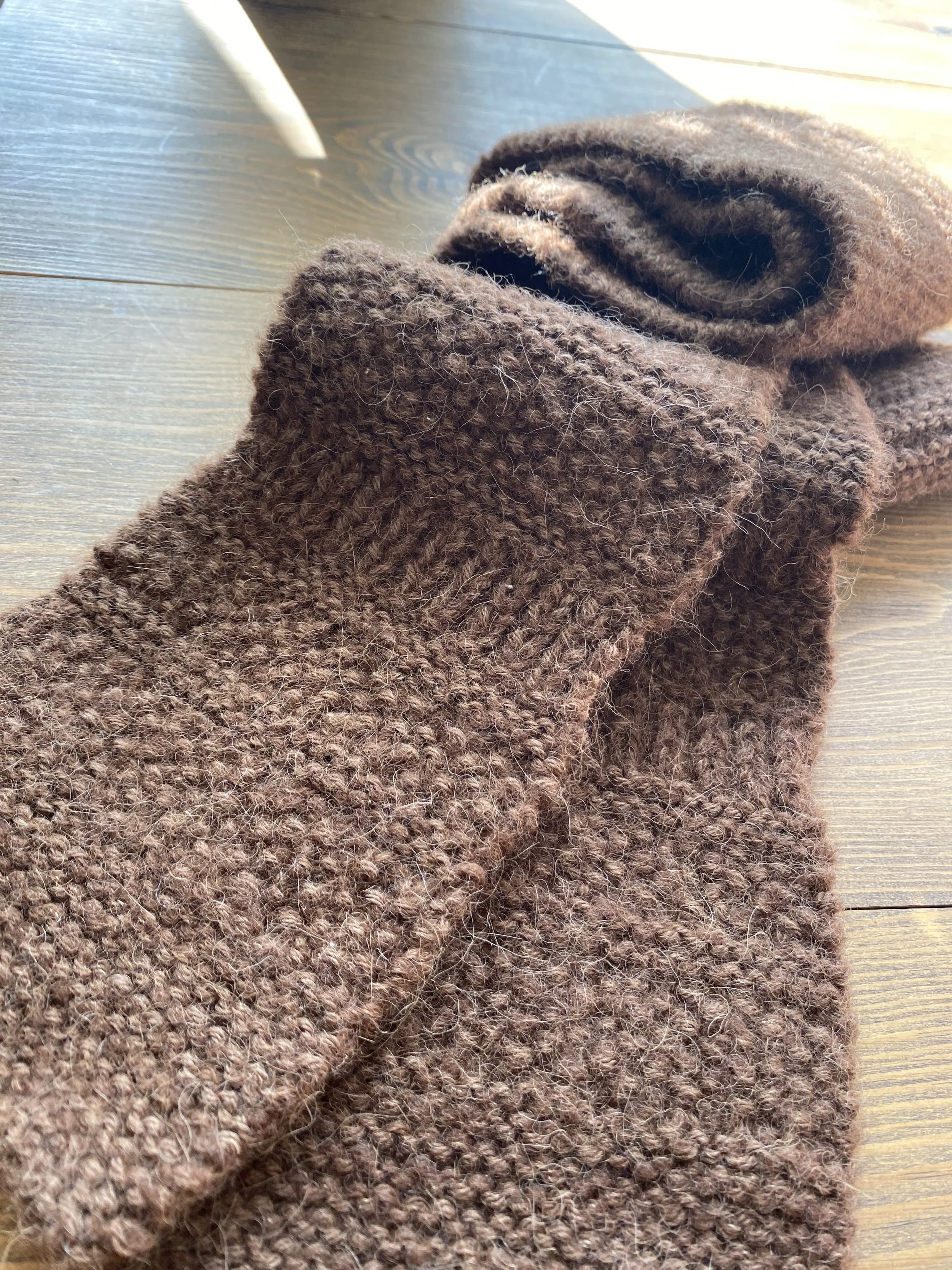 This pattern in based on medium thick yarn: Make Your Own - Dreamy Blend. Knitting needle: size 5mm circular 80 cm + double pointed needles for cuffs. You can of course use any yarn you like, just note that measurements will vary.